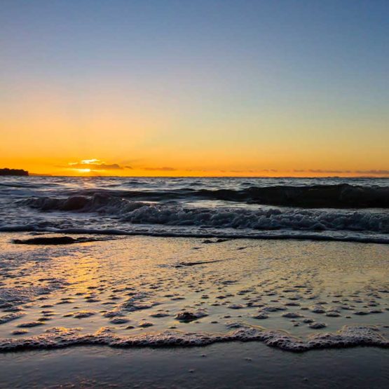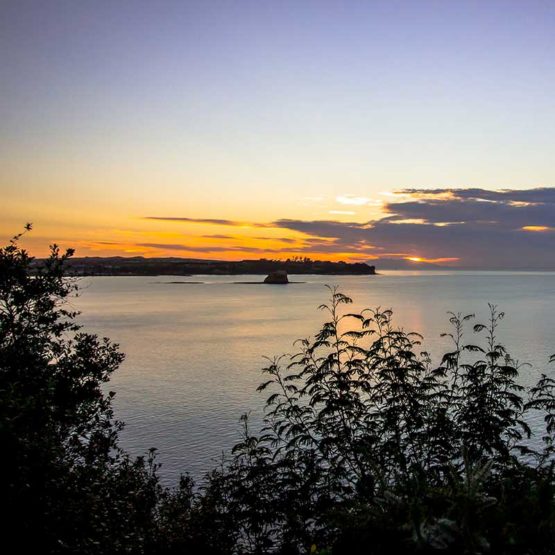 Eight landscape photos taken around Whangaparaoa, Little Manly beach, Matakatia beach, on eight fridge magnets.